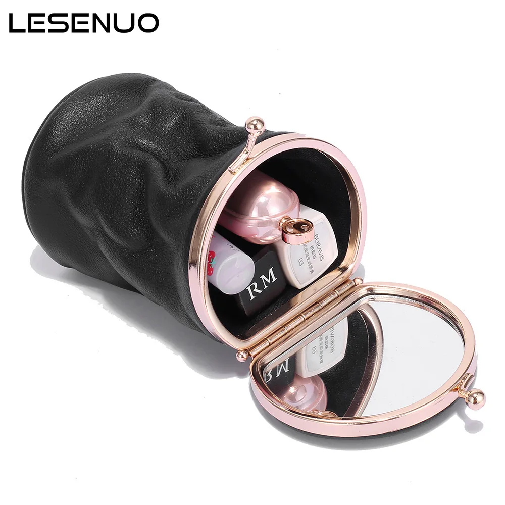 LESENUO портативный чехол для косметики маленький портативный Дамский Мини косметичка из натуральной кожи губная помада сумка для хранения с зеркалом кошелек