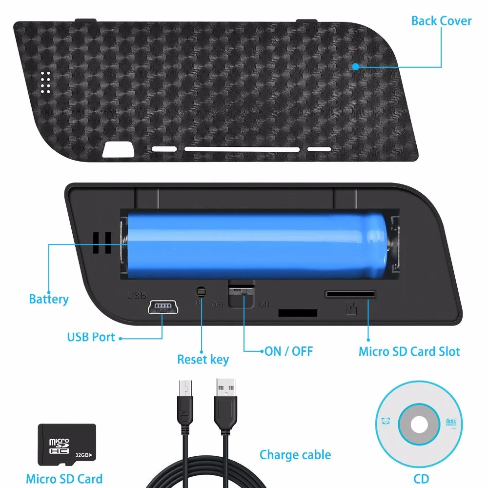 Стандартная комплектация камеры включает:1 камера с часами1 X USB-кабель1 Руководство пользователя1x32 / 64G TF-карта (на ваш выбор)