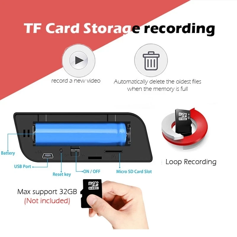Поддержка смартфона планшета APP удаленного просмотра и управленияПоддержка просмотра и управления компьютером Поддержка записи детектива движенияПоддержка карт 64GB TF в макс., круговое хранилище Поддержка записи и зарядки одновременно Разрешение видео: 1080PФормат видео: AVI Частота видеокадров: 30 кадров в секунду