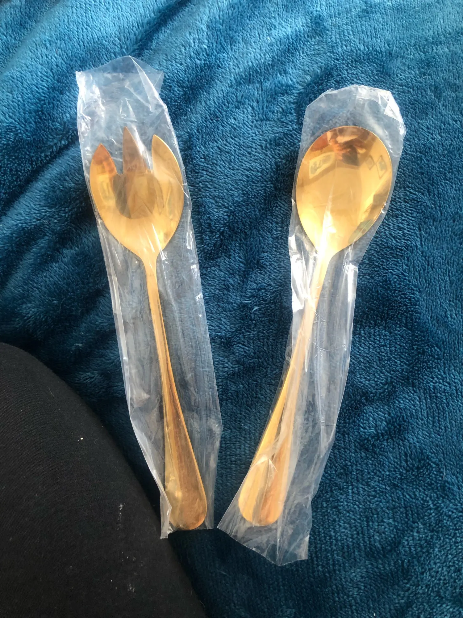 Золото салатная Ложка Вилка 2 шт. салатная ложка Нержавеющаясталь набор столовых приборов Сервировочный набор ложек Красочные Уникальный ложки Кухня аксессуары