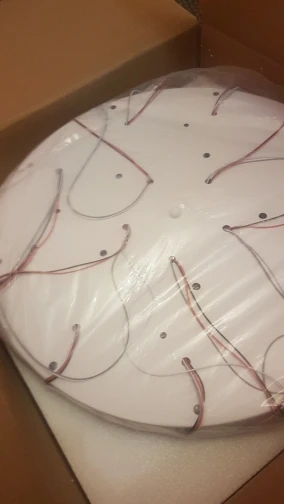 Доставка заняла 3 недели из-за отсутствия на складе у продавца, о чем он мне сообщил и продлил срок обработки заказа. Упаковано в коробку и пенопласт. Трек отслеживался. Посылку принес курьер домой. Работает, светит хорошо и достаточно на 25 м2. Пульт пришлось синхронизировать с люстрой, сразу не люстра на него не реагировала.