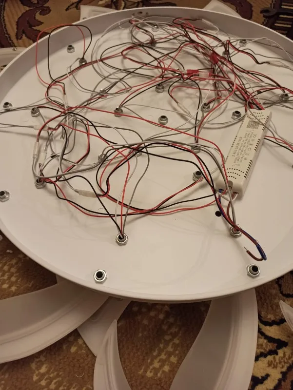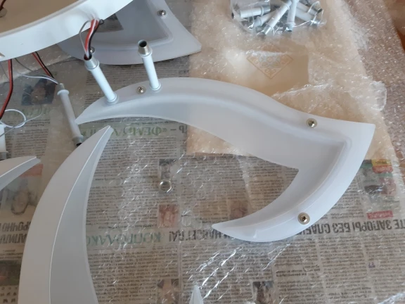 Очень удивил пульт управления. Черного цвета! Один лепесток с дефектами, вмятиной и царапиной, ну пойдет. Отправка и доставка очень быстрые, фактически на момент заказа самая низкая цена. Да, и люстра частично собрана, что облегчает дальнейшую сборку.