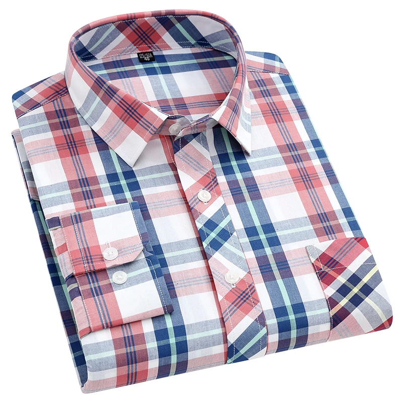 рубашка в клетку рубашки для мужчин Рубашки с длинным рукавом Aoliw...