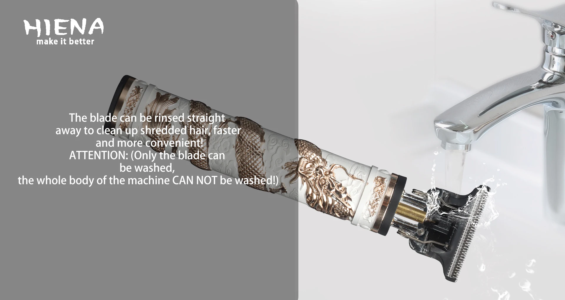 Лезвие можно промыть сразу, чтобы очистить измельченные волосы, быстрее и удобнее!Внимание: (только лезвие можно мыть, весь корпус машины нельзя мыть!)