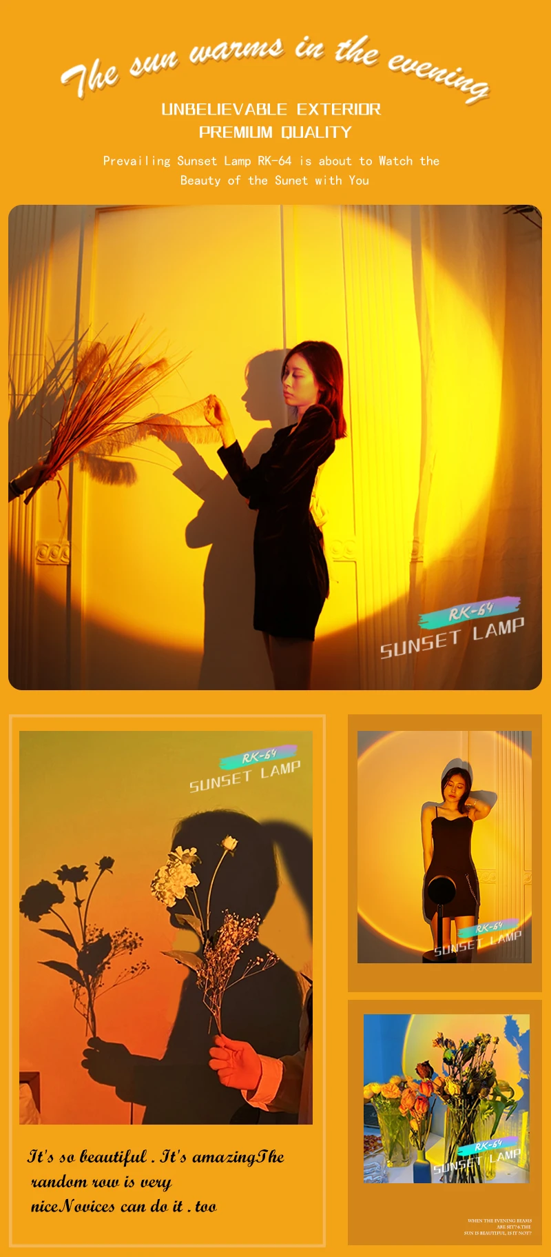 Светодиодный ночник, закат, Радужный проектор, атмосферное освещение, 5 В, USB для фона кофейни, Настенный декор, цветная лампа