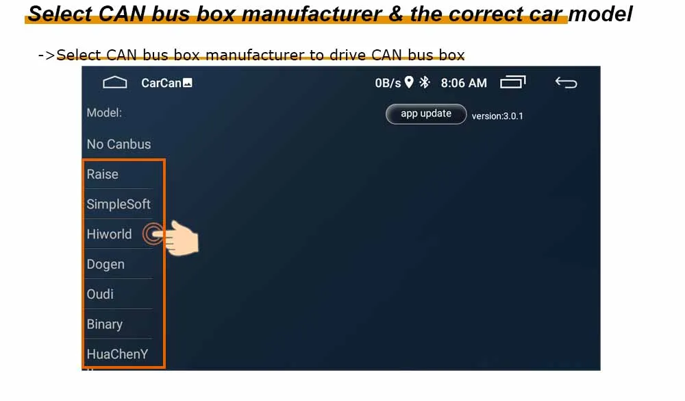 -> Выберите CAN bus box производитель для езды CAN Bus BoxПроизводитель CAN Bus: "Hiworld"