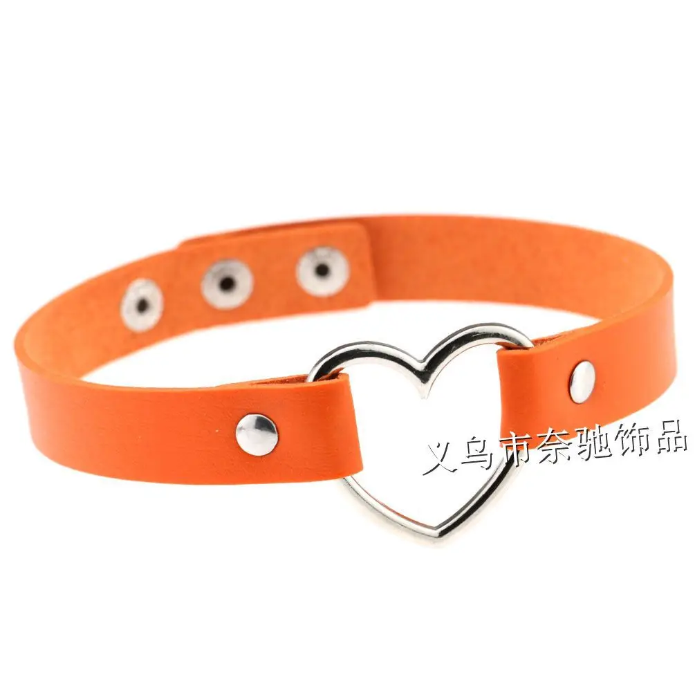 Женское оранжевое панк колье сексуальное ожерелье-ошейник из искусственной кожи гот заклепки колье-чокер, ожерелье, цепочки вечерние Клубные готические Egirl ювелирные изделия