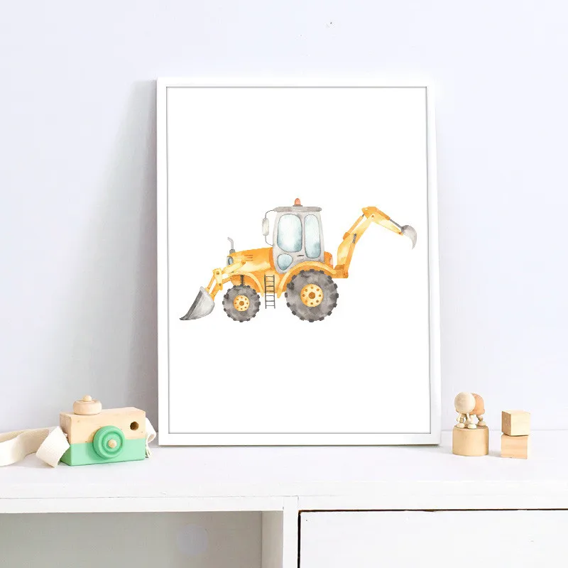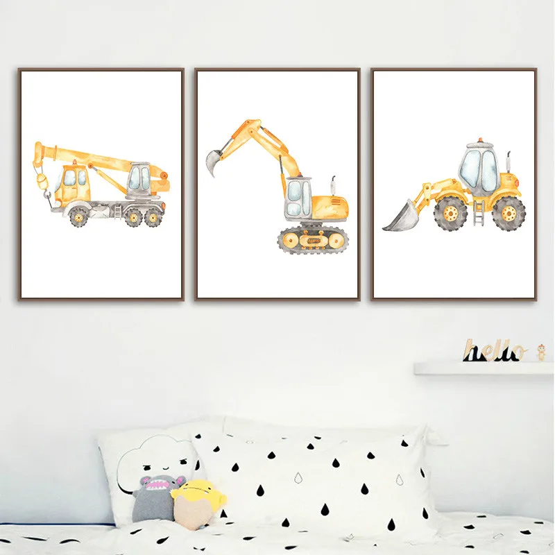Картина на холсте с изображением экскаватора, машины, грузовики