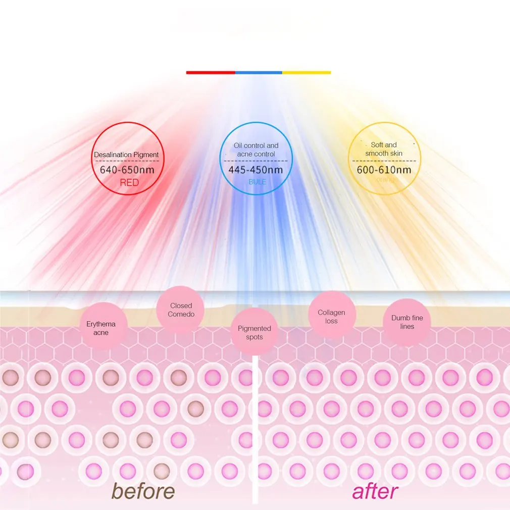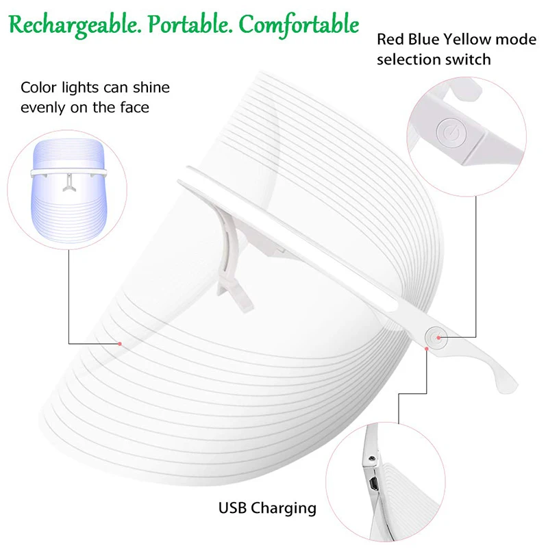 3 цвета светодиодный маска для лица Фотон терапия анти-акне удаление морщин омоложения кожи уход за кожей лица фототерапии Красота Инструменты для ухода за кожей