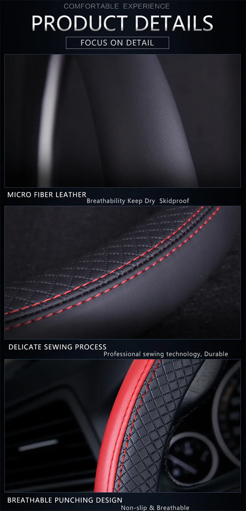 Точный процесс сверления позволяет чехлу рулевого колеса обладать высокой воздухопроницаемостью и впитывать пот. Очень комфортно во время вождения. Защитите руки от горячего горения летом и ледяной зимой.