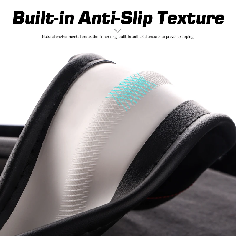 Внутреннее кольцо имеет противоскользящую конструкцию. Убедитесь, что чехлы на руль не сдвигаются во время использования. Сохраните безопасность всех предметов. Лучшее сцепление с рулем дает вам больше контроля над автомобилем.