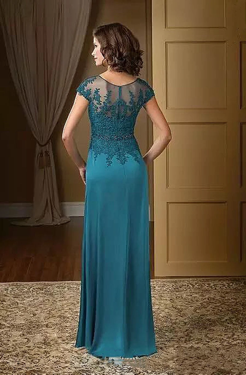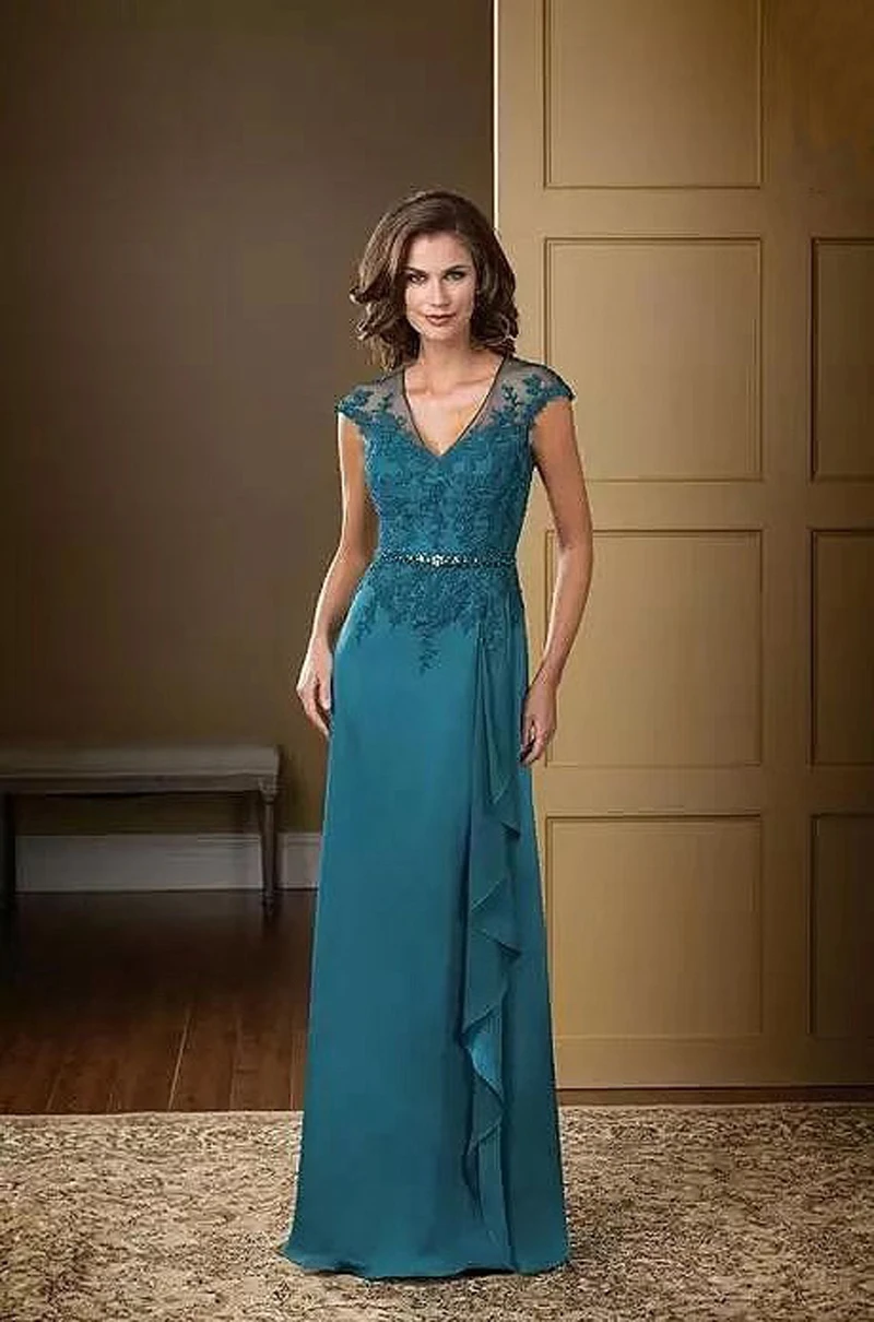 Элегантное платье с v-образным вырезом с короткими рукавами для матери; Обувь под свадебное платье для невесты; Павлин; Синий шифоновая аппликация Свадебная вечеринка гостей мать платье размера плюс 2021