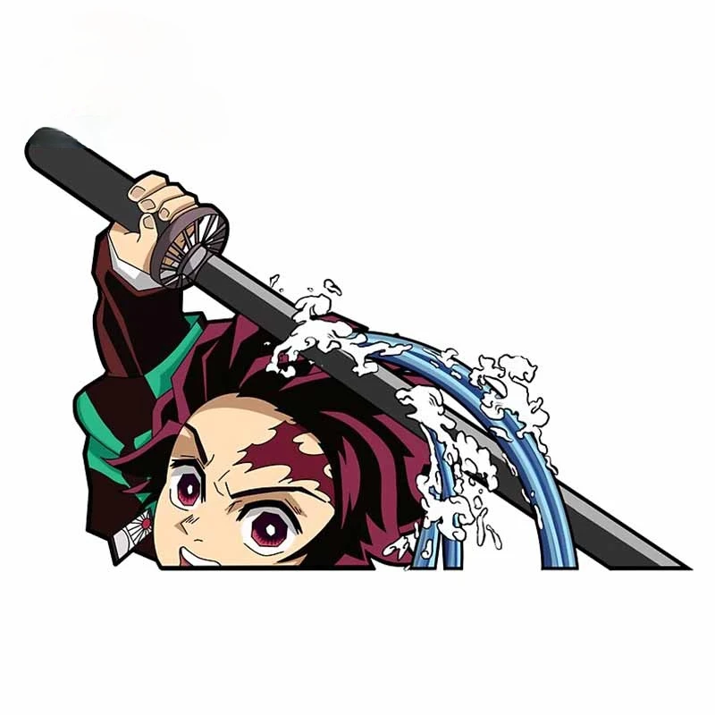 13 см наклейки на автомобиль, рассекающий демонов, наклейки Tanjiro Peeker, наклейки на окна, ноутбук, мотоцикл, автомобиль, водонепроницаемая виниловая пленка для автомобиля, игры Waifu аниме