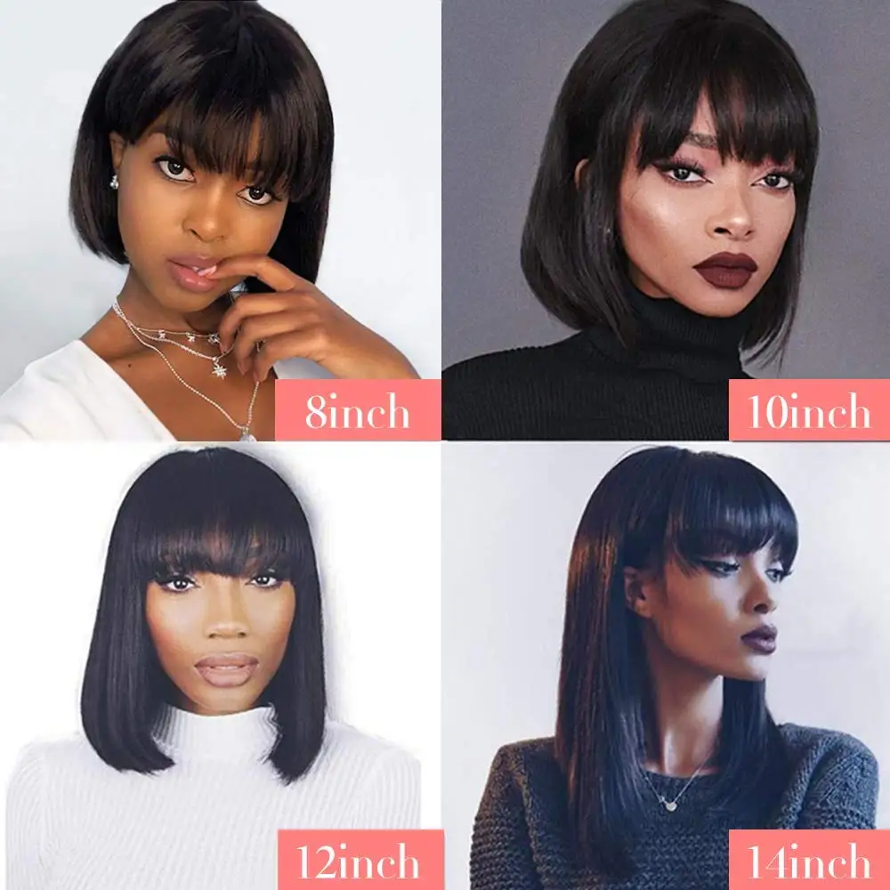 Прямые короткие парики с челкой, парики из человеческих волос для женщин, бразильские, без шнуровки, без клея, полностью машинное производство, дешевые парики из человеческих волос