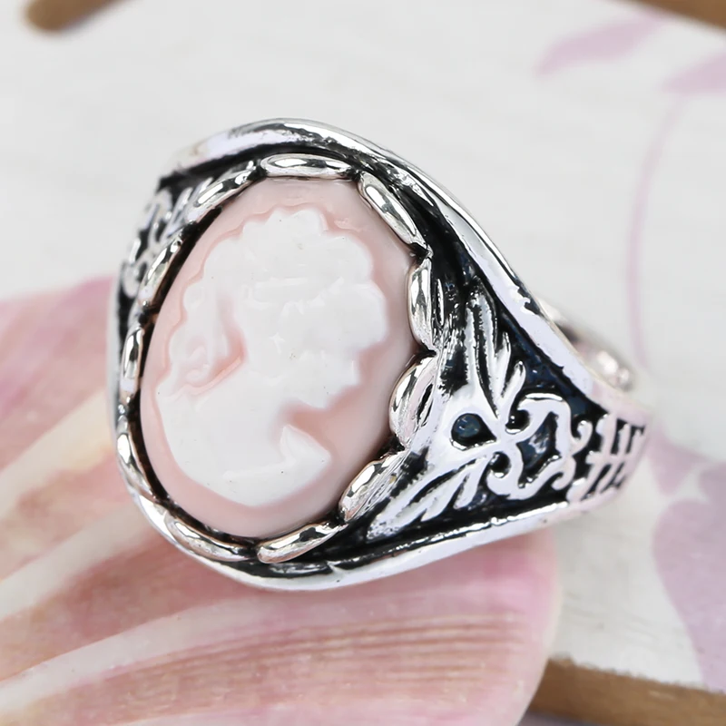 Модные кольца для Резные Камея голова королевы портрет, хороший подарок на день матери, кольца для женщин серебро Цвет вечерние ювелирные изделия аксессуары