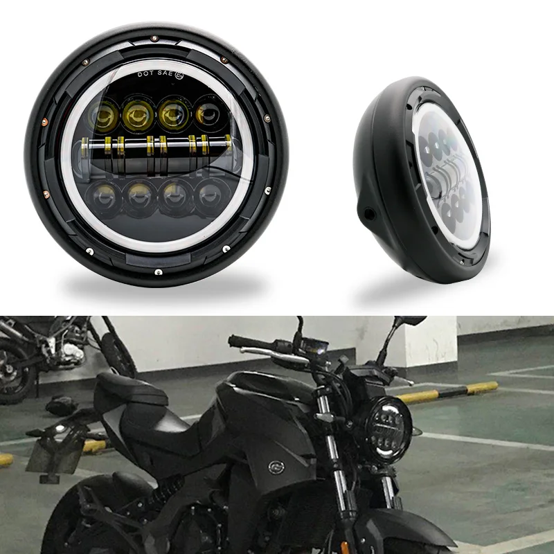 Мотоциклетная фара для Victory, Yamaha, Suzuki, BMW, 7 дюймов, 7,5 дюйма, с корпусом, светодиодная передняя фара, Универсальный светильник для Кафе Racer, дальность освещения