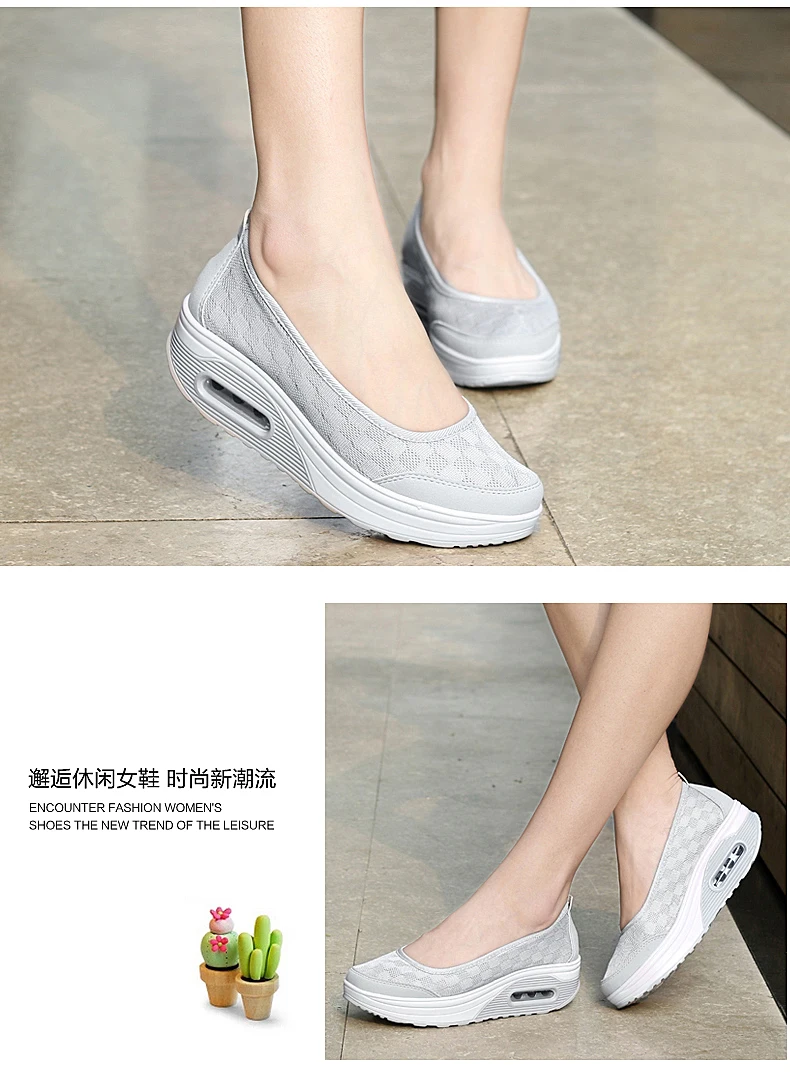 Кроссовки женские прогулочные, дышащие сетчатые, без шнуровки, на п...