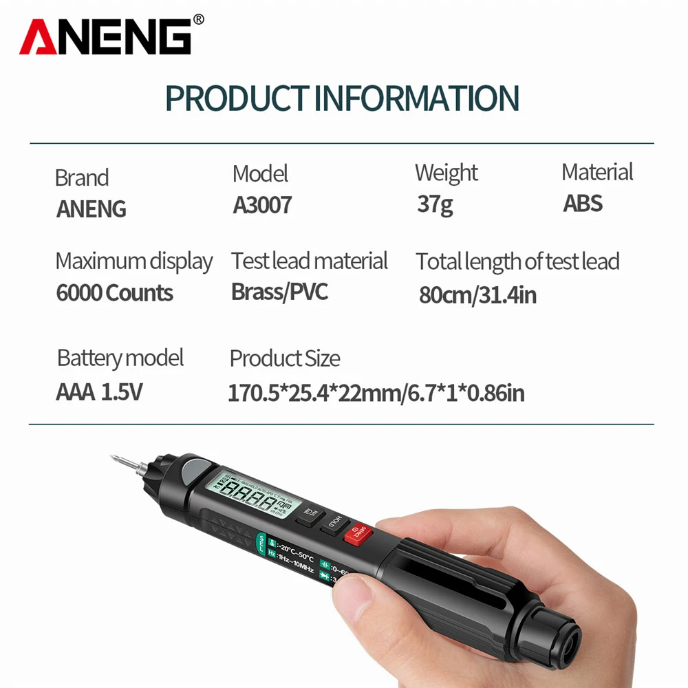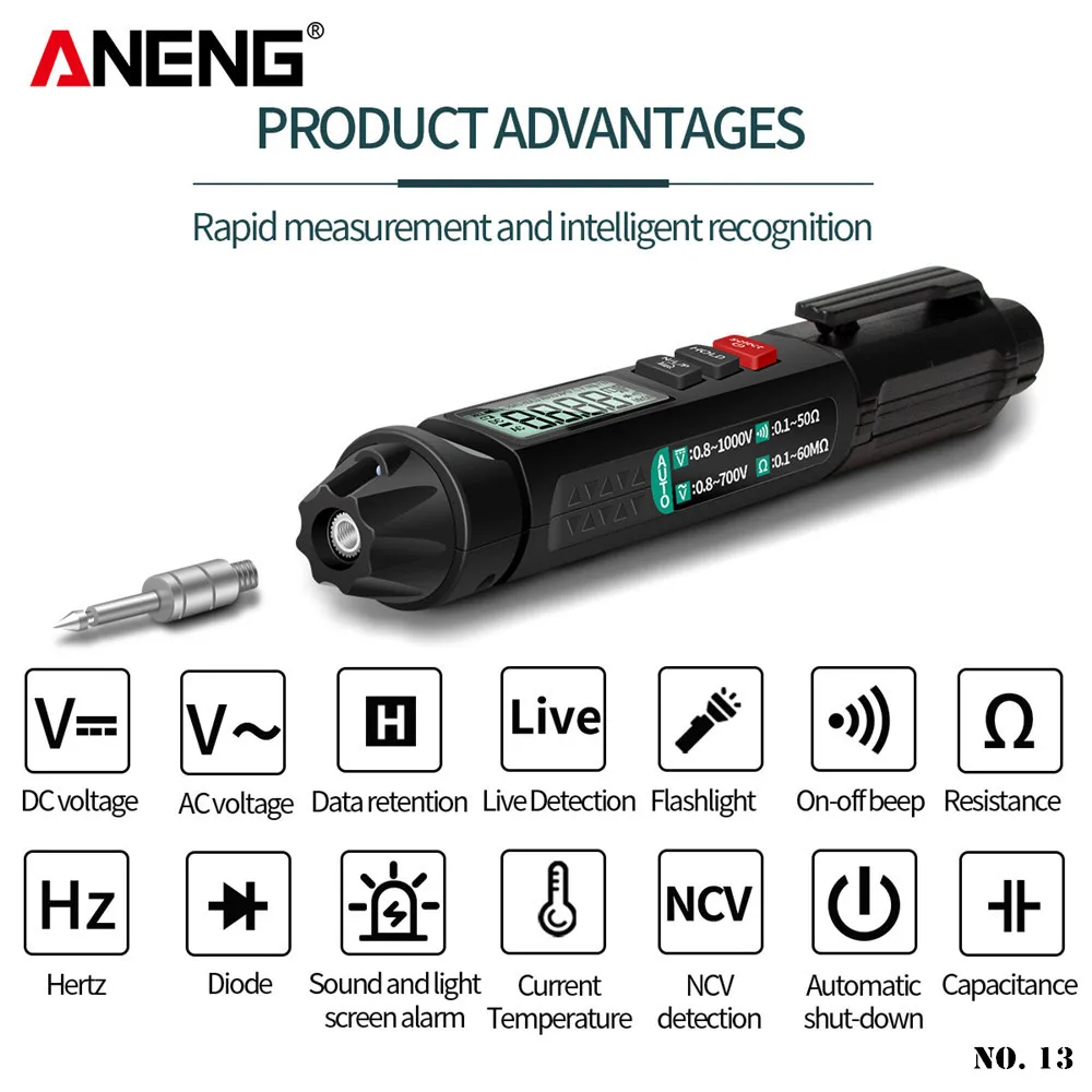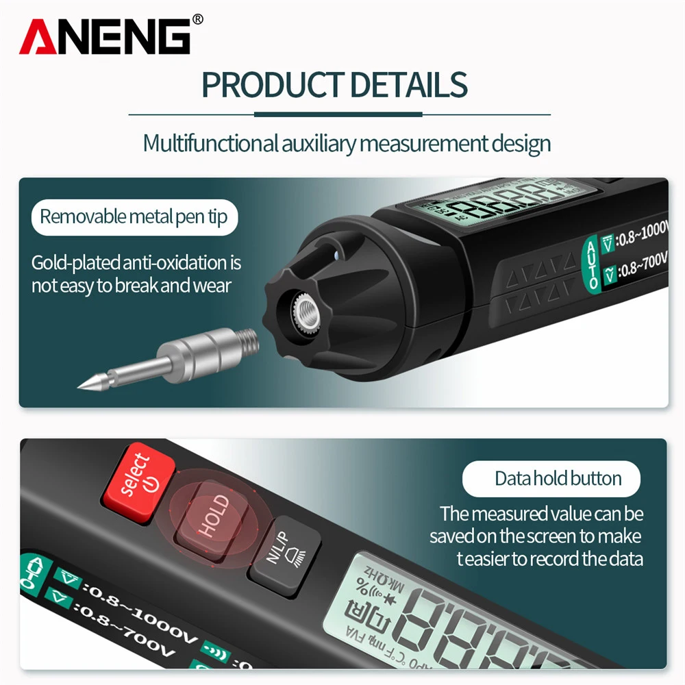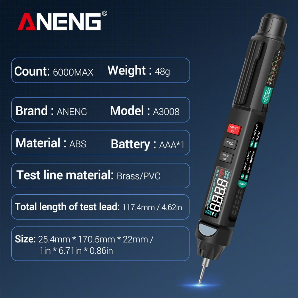 Тип ручки, интеллектуальный цифровой мультиметр, многофункциональный тест-карандаш, ЖК-дисплей, мощная ручка, мощный и портативный мультиметр, ручка