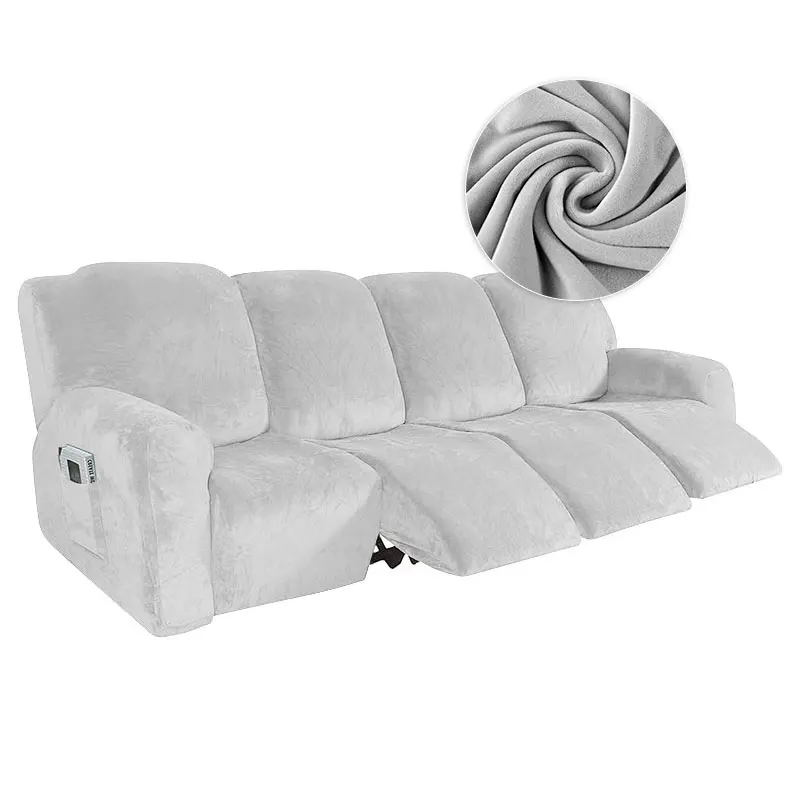 ● Очень подходит: Эта инновационная 4-х частей для дивана с откидной спинкой чехол Изготовлен из прочного и мягкого высокого эластичного бархата ткань. Подходит для ручного и электрического кресла. Ширина, подходящая для наклонения, составляет 23-35 дюймов. С правой ручкой, карманом и непрерывной подставкой для ног. На заднем углу сиденья есть две эластичные петли, которые можно вытянуть на заднюю часть кресла.