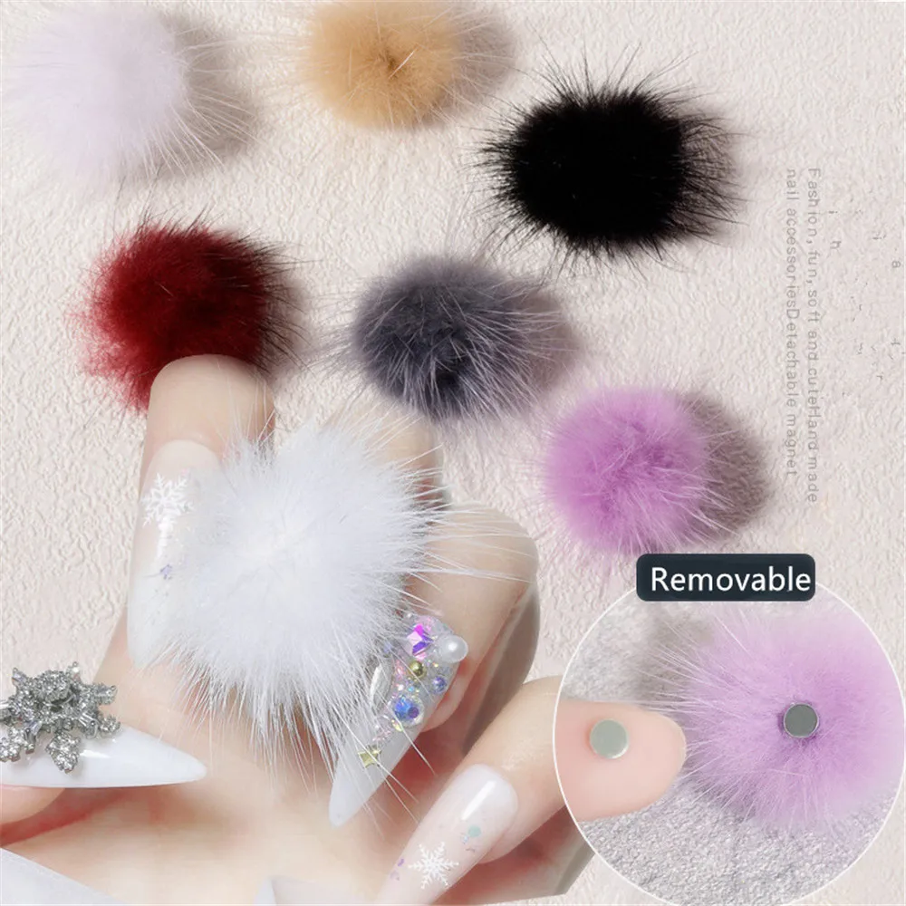 10 шт нейл-арта Съемный магнит ногтей украшение, украшение для ногтей, Kawaii, аксессуары для ногтей с маленькими пушистыми помпончиками для нейл-арта украшения для ногтей