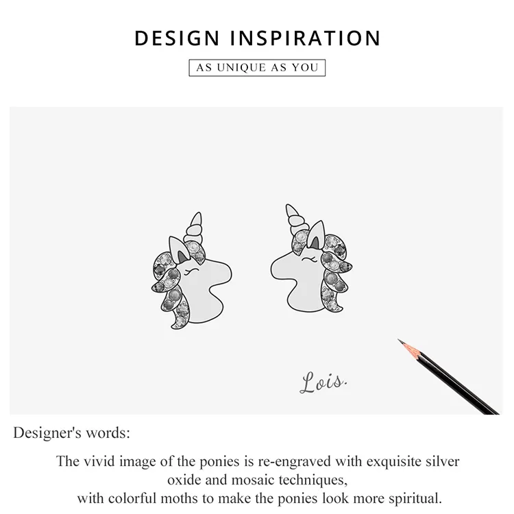 Женские серьги-гвоздики в виде лошади, из серебра 925 пробы