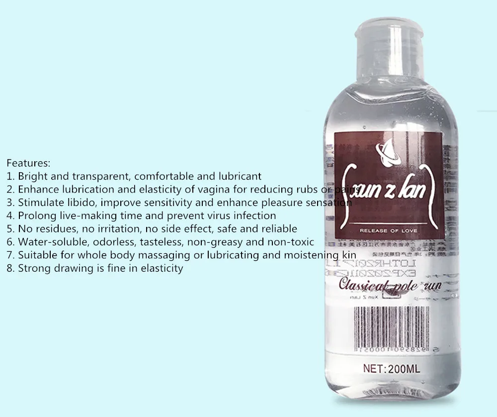 Особенности: 1. Яркий и прозрачный, удобный и смазочный материал 2. Улучшает смазку и эластичность влагалища для уменьшения ржавчины или боли 3. Стимулирует либидо, улучшает чувствительность и улучшает ощущение удовольствия 4. Продлевает время изготовления и предотвращает вирусную инфекцию 5. Без остатков, без раздражения, без побочного эффекта, безопасный и надежный 6. Водорастворимый, без запаха, безвкусный, нежирный и нетоксичный 7. Подходит для массажа всего тела или смазывания и увлажнения 8. Сильный рисунок хорошо эластичен