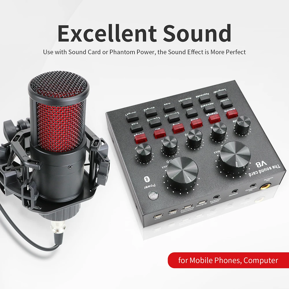 Профессиональный Студийный конденсаторный микрофон, звуковая карта, наборы фантомного питания, записывающий микрофон для ПК, потокового видео