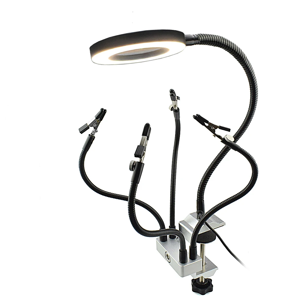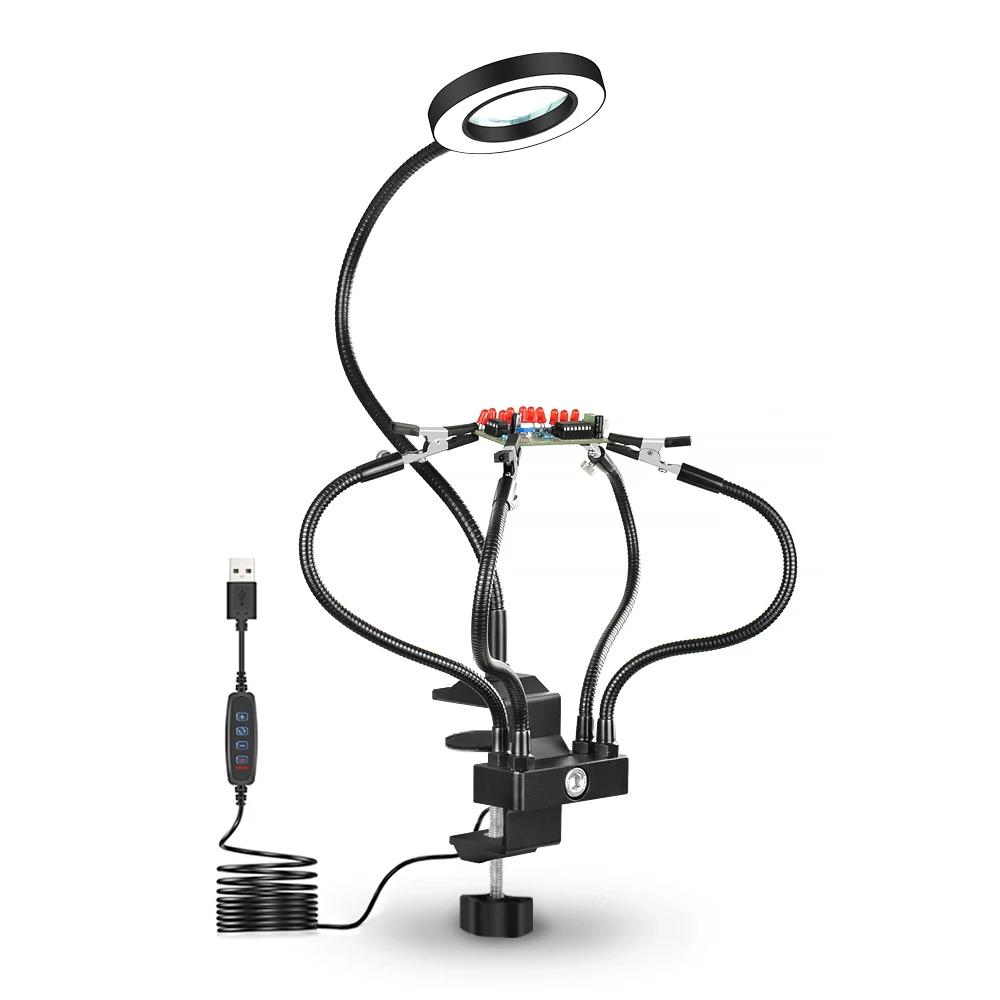 Инструменты для сварки, инструмент для третьей руки, Настольный зажим, паяльная подставка, USB светодиодный, 3X лупа, 5 шт., гибкие руки, скамейка, тиски, подставка для паяльника