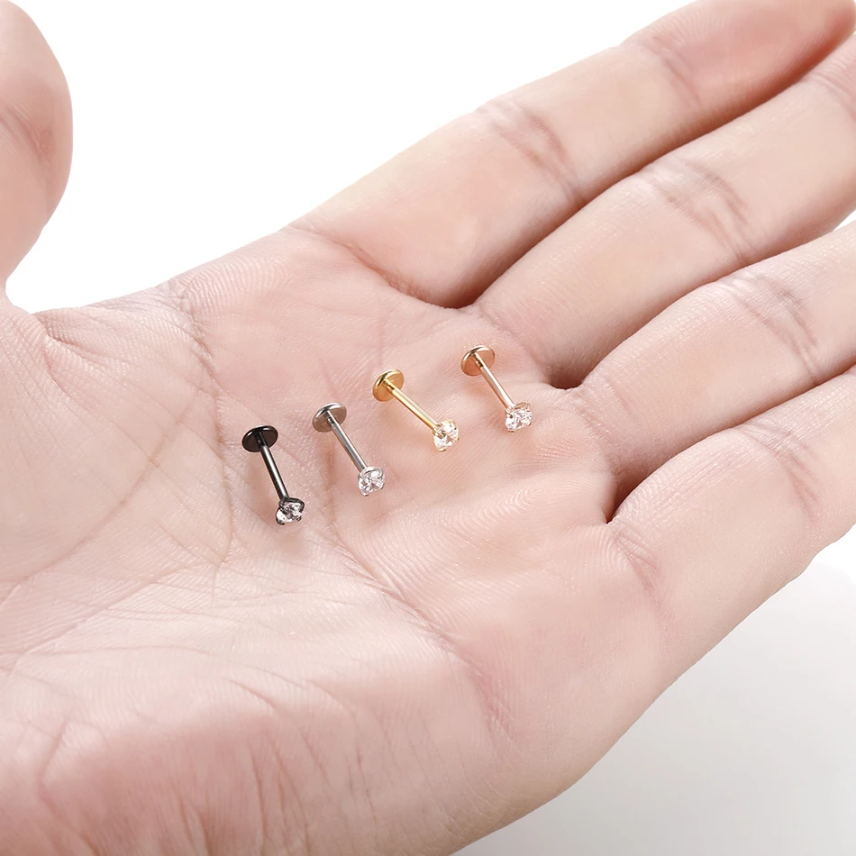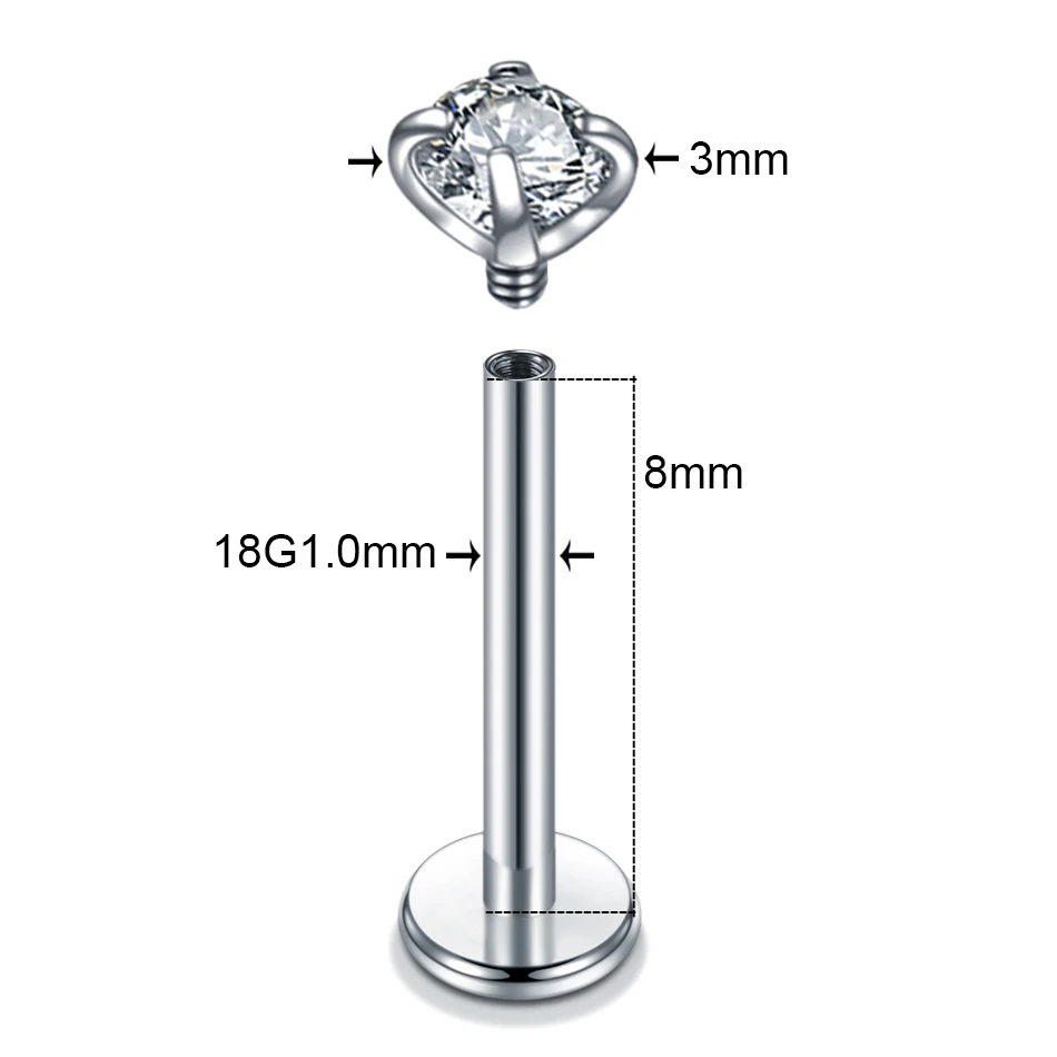 •Удобный лабрет.Описание товара соответсвует действительности.Шляпка/циркон крупный (но это лично для меня) 3-4мм.Длина для свежего прокола до Даунсайзинга 0’8мм подходящая. Идеально тонкий 18G в диаметре 1,0мм. ~мерси.