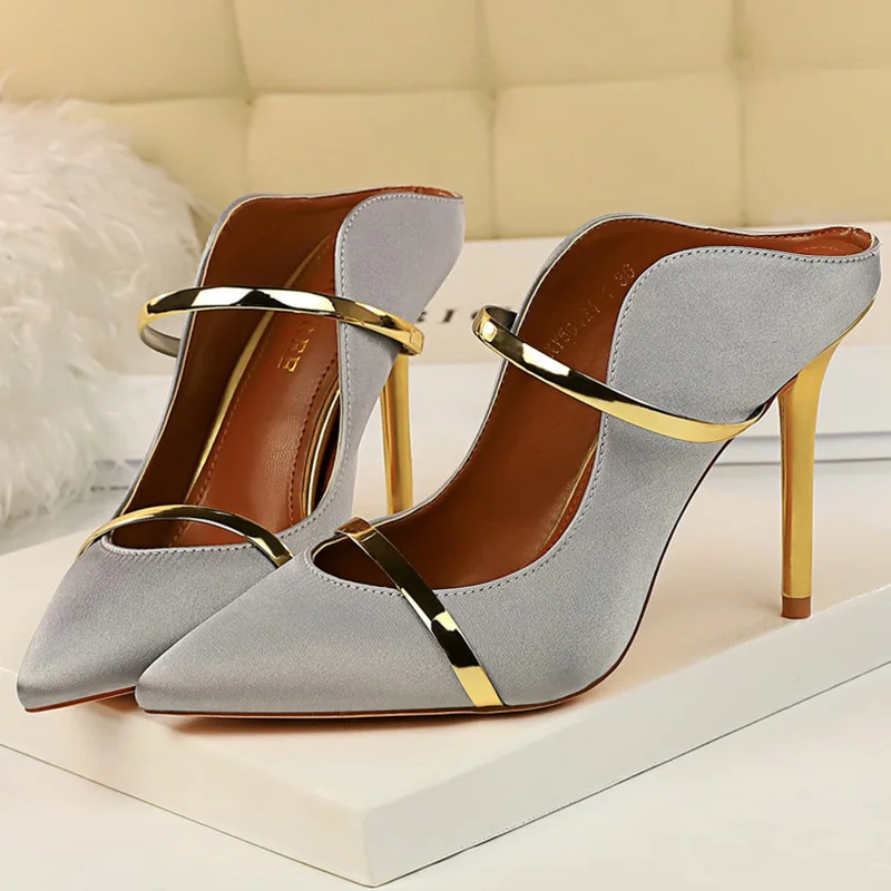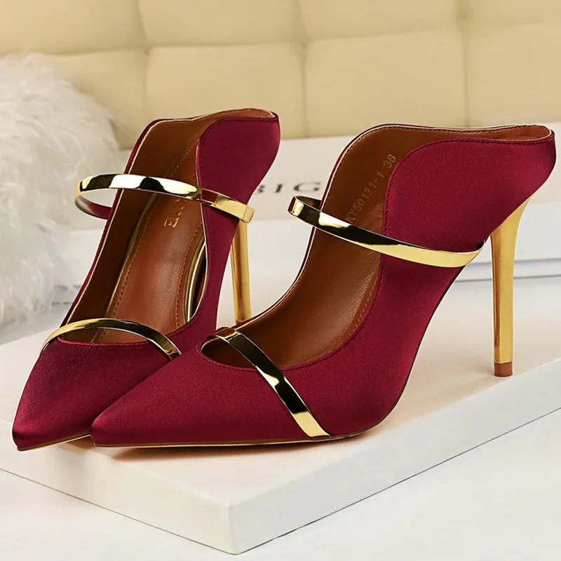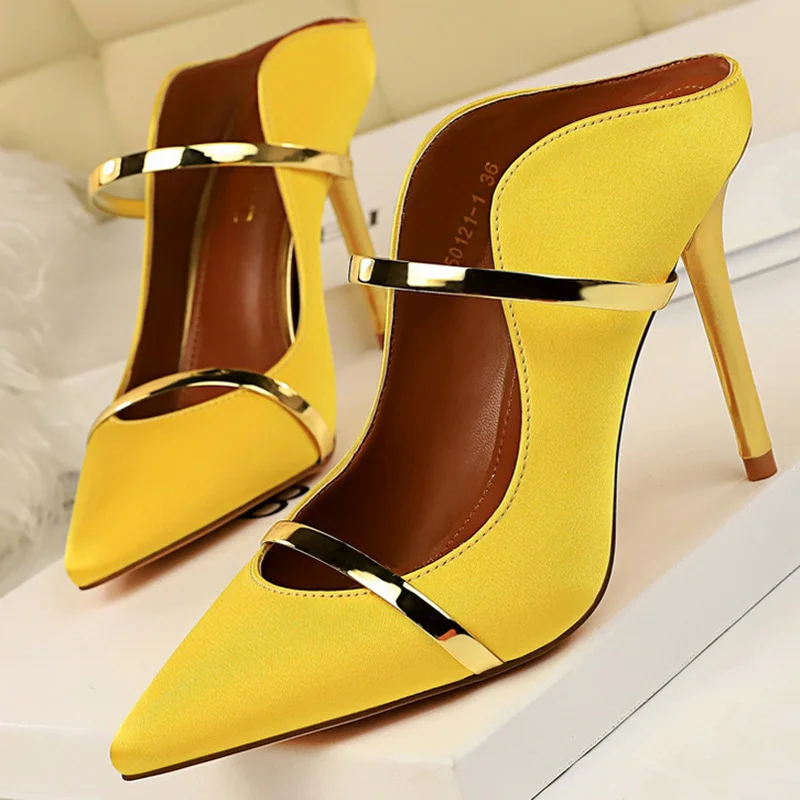 Мюли женские на очень высоком каблуке 10 см, пикантные шлепанцы для выпускного вечера, шелковые сланцы с острым носком, каблук-шпилька, желтые, женские туфли на выпускной, лето 2021
