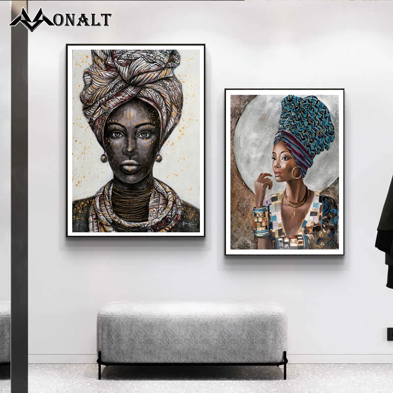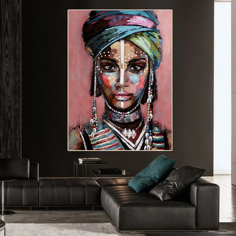 Красочные портреты африканского племени Черные Женщины Девушка Граффити Искусство Холст Картина маслом Роскошные постеры и принты картина