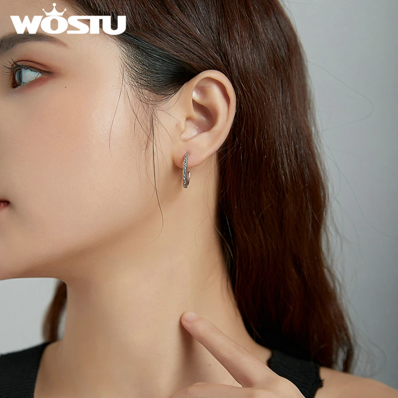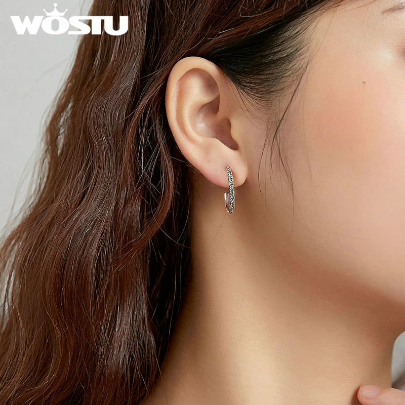 WOSTU 925 стерлингового серебра Винтаж венки серьги-гвоздики простые серьги для женщин Мода серебряные ювелирные изделия CQE1129