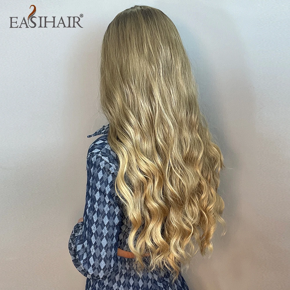 EASIHAIR длинные глубокие волнистые синтетические парики Омбре темно-коричневые смешанные золотые средние части термостойкие вьющиеся волосы парики для черных женщин