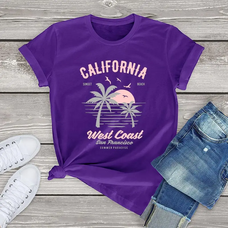 California West Coast Sunset And Beach, футболка унисекс, женская одежда, летняя женская футболка с коротким рукавом, хлопковые топы для женщин, Мягкие Блузки, женская одежда, летняя одежда большого размера, уличная одежда 3xl