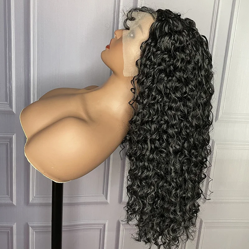 Натуральные черные афро кудрявые синтетические кружевные передние парики для женщин ежедневные термостойкие предварительно выщипываемые с детскими волосами