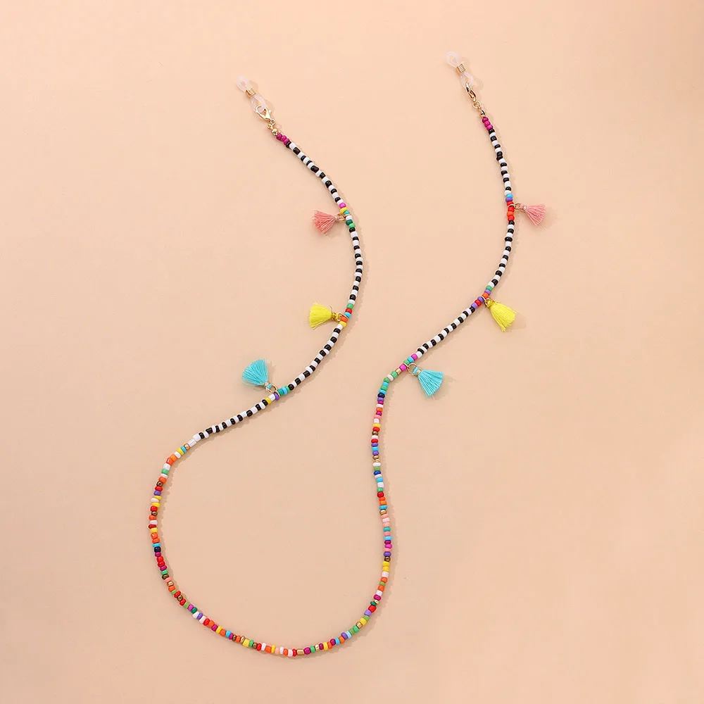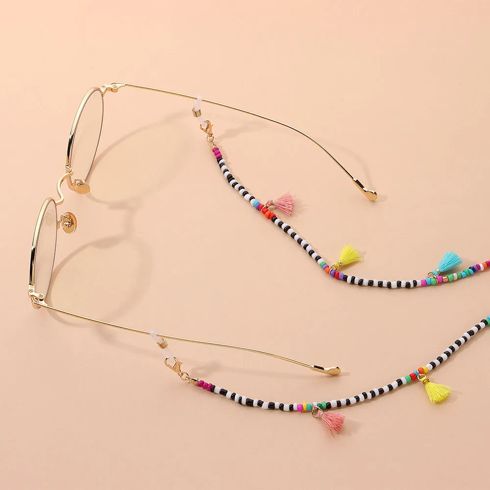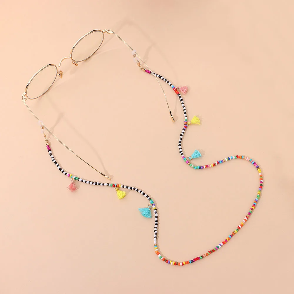 Многоцветные бусины анти-потерянный ремешок для взрослых бусины в виде риса маска цепи ожерелье с кисточками, с завязками на шее очки цепи солнцезащитные очки алюминиевая рама