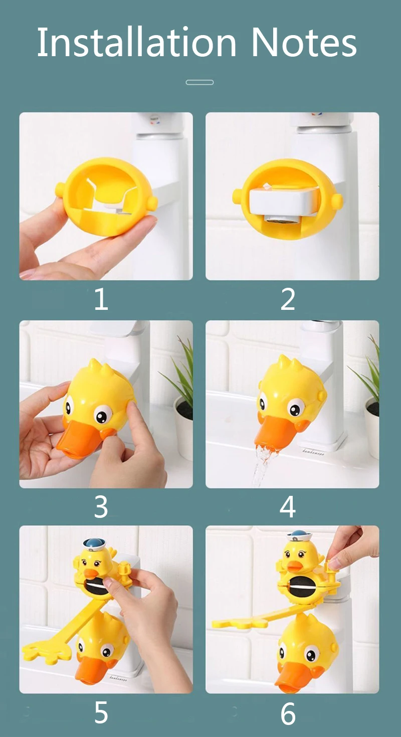 Название продукта: удлинитель смесителяМатериал: АБС-пластик + TPE силиконРешить проблему: ребенок столкнулся с дилеммой, не в состоянии достичь при мытье рук.Пункты продажи: 1. Подходит для большинства кранов, пожалуйста, свяжитесь со службой поддержки клиентов для получения подробной информации2. Охрана окружающей среды и безопасность, отсутствие специфического запаха, может выдерживать кипячение воды.3. Милая и милая форма любима малышам.4. Режим двойного потока, отрегулируйте угол утки, взрослые также могут использовать его.