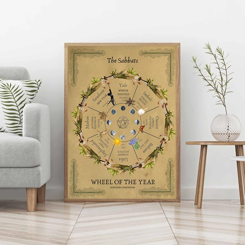 Постер с изображением колеса года, Волшебная книга о колдовстве с тенями, холст, картина, принты, домашний декор, настенные художественные картины