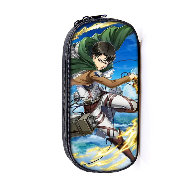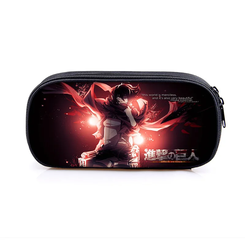 Пенал для косметики с аниме «Атака Титанов», школьный чехол для мальчиков и девочек с рисунком Levi Mikasa Eren, детский пенал, Детская сумка для канцелярских принадлежностей