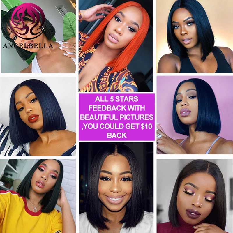 Angelbella бразильские прямые парики боб 4X4 парики из человеческих волос на сетке 14 16 бразильские волосы Remy боб парик для женщин