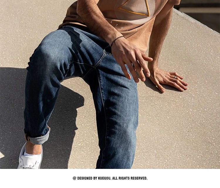 KUEGOU хлопчатобумажная одежда мужские рубашки стильное джинсовое п...