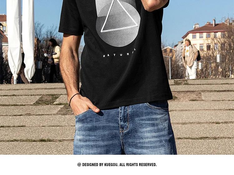 Футболка KUEGOU мужская с принтом, тенниска из 100% хлопка с коротк...