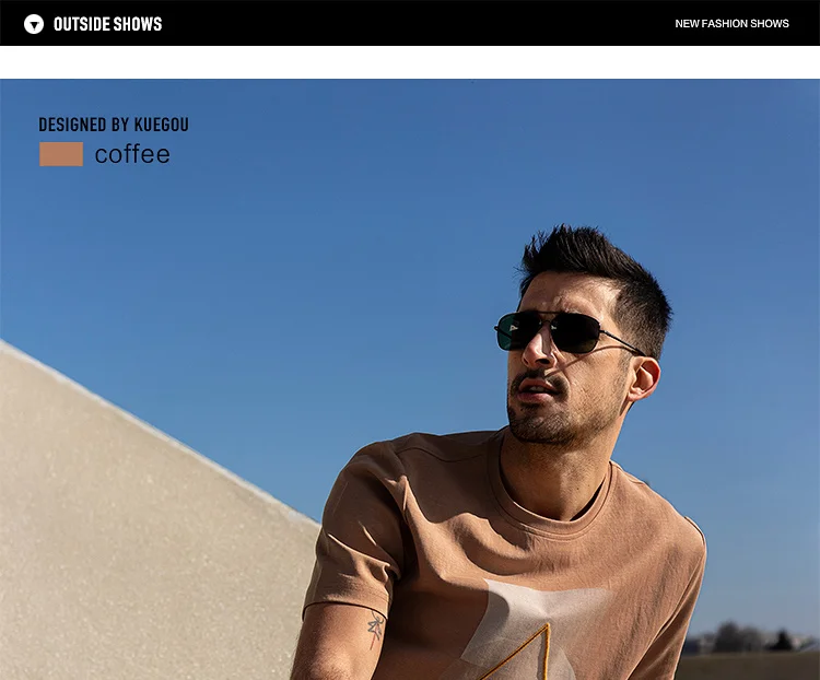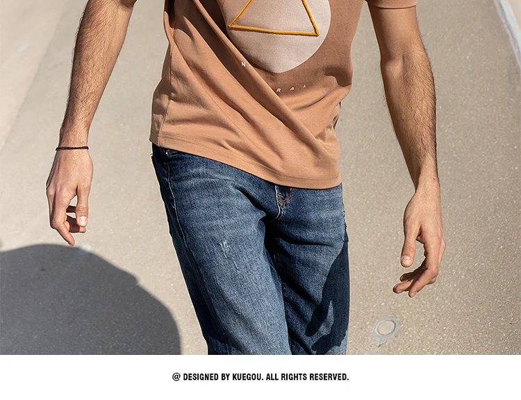 Мужская хлопковая футболка KUEGOU, летняя футболка с коротким рукав...