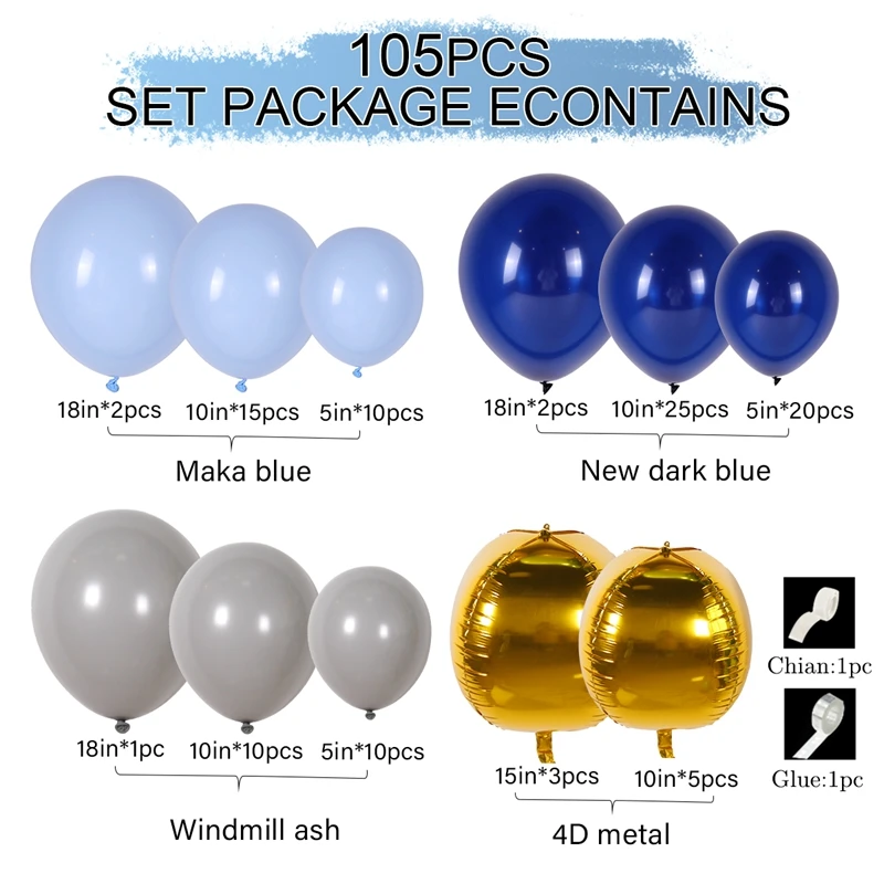 Гирлянда из 105 воздушных шаров, серебристый воздушный шар шт., син...