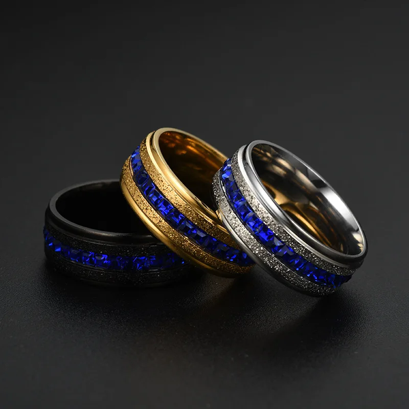Кольцо из нержавеющей стали с кристаллами, для мужчин и женщин