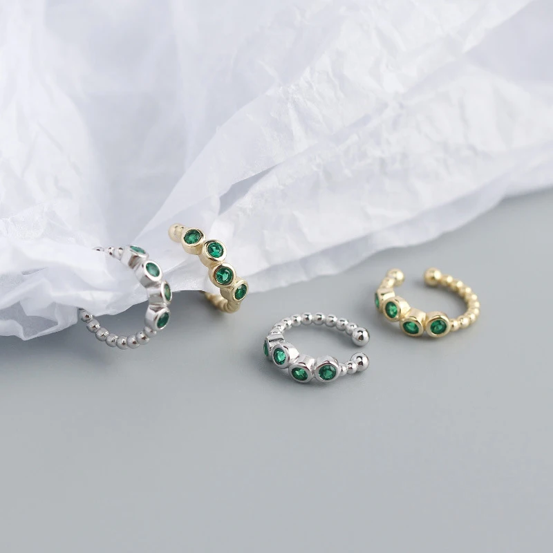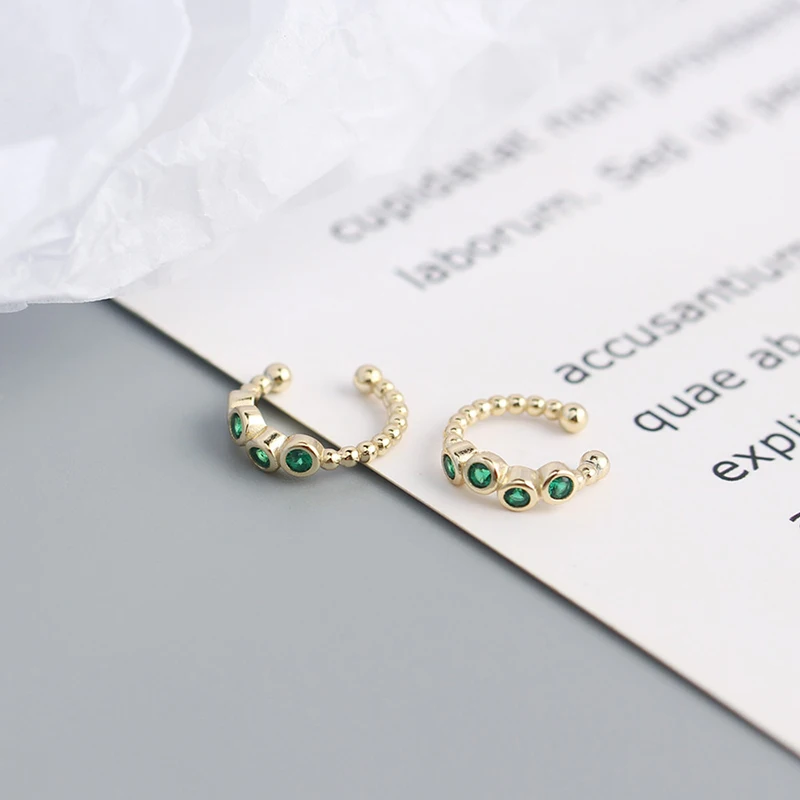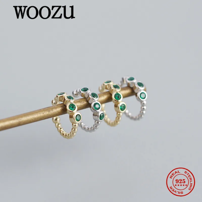 WOOZU реальные 925 стерлингового серебра простой зелёный циркон, НЕ ПИРСИНГ клип серьги для женщин вечерние Винтаж Рок серьги-каффы подарки