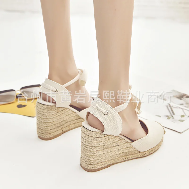 Сандалии женские холщовые с ремешком на щиколотке, эспадрильи, удобные дышащие, льняная пенька, туфли-лодочки, повседневная обувь