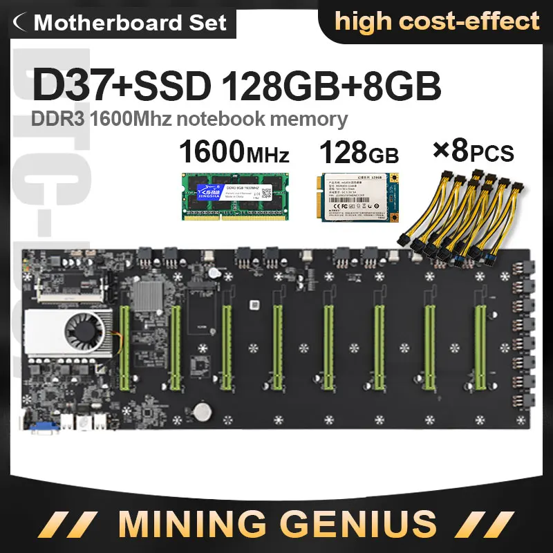 Добыча материнская плата BTC-D37 комплект комбо с оперативной памятью 8 Гб DDR3 1600 МГц Оперативная память 1037U 128 ГБ mSATA SSD, Мощность кабель Поддержка 3070 3080 3090 2060S 6600XT 6800