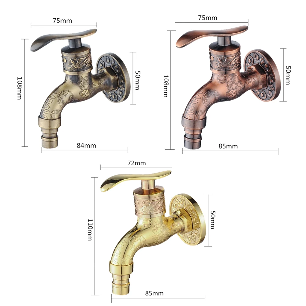 Резной настенный кран для бутылки, кран из цинкового сплава ретро-кран, декоративный наружный садовый смеситель для стиральной машины