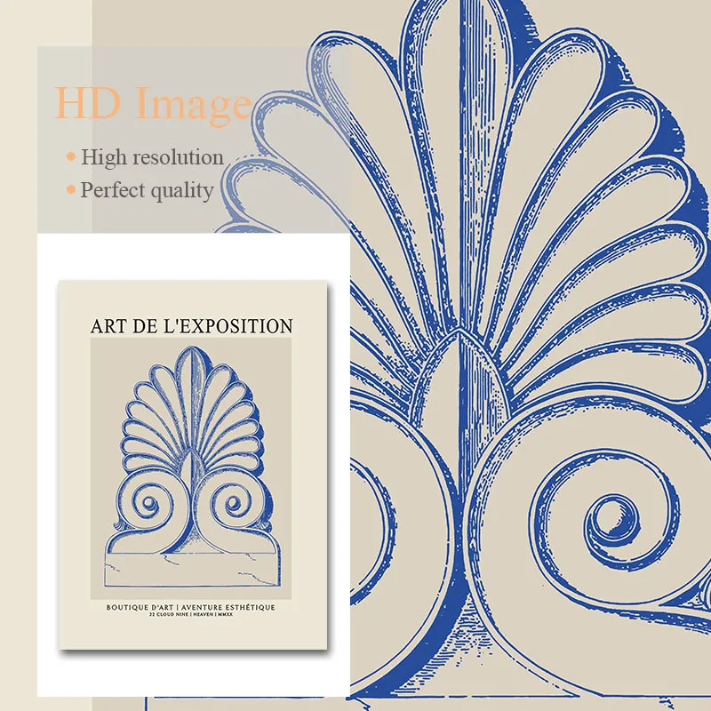 Классическая винтажная абстрактная синяя бежевая настенная Картина ...